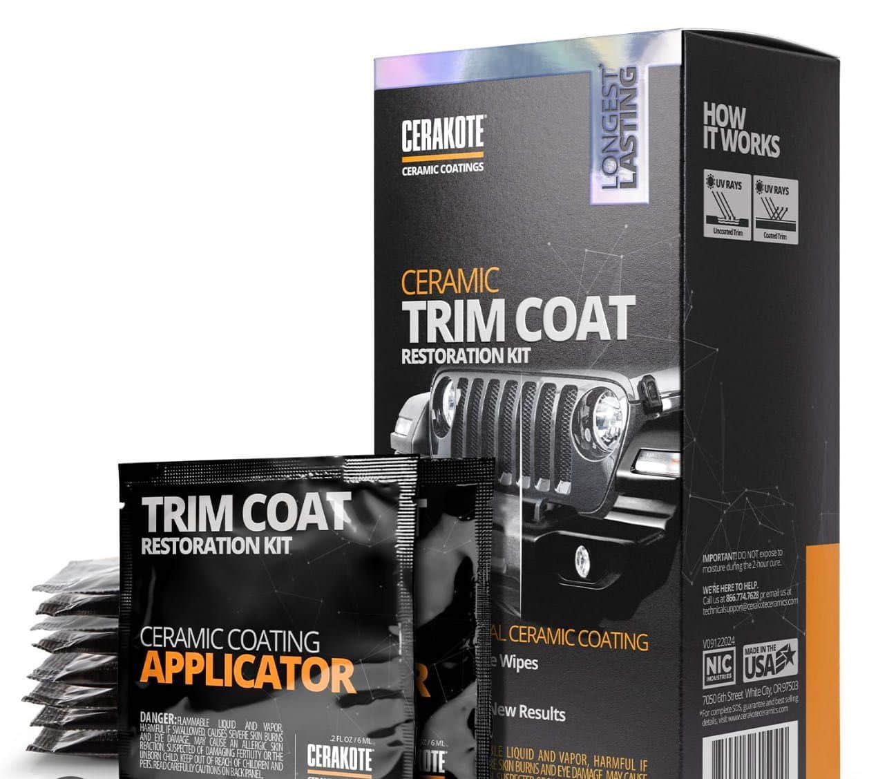 Ceramic Trim Coating is a long-lasting protective treatment designed to restore and protect exterior plastic, rubber, and vinyl trim. The advanced ceramic formula bonds to the surface, reviving faded trim with a deep, rich finish while creating a durable hydrophobic barrier. It protects against UV rays, oxidation, chemicals, and environmental contaminants, helping prevent future fading, cracking, and discoloration.